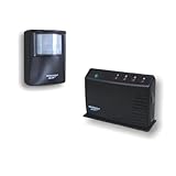 Keep track of what's happening on your property without spending a fortune on a complicated security system with this wireless driveway monitor system. It wirelessly transmits a signal to the indoor receiver base unit when motion is detected, up to 40 feet away from the sensor. The base unit can receive signals from sensors placed up to 800 feet away, providing an audio and visual prompt. System includes base unit and sensor; base unit can work with up to 4 sensors and additional sensors are available.